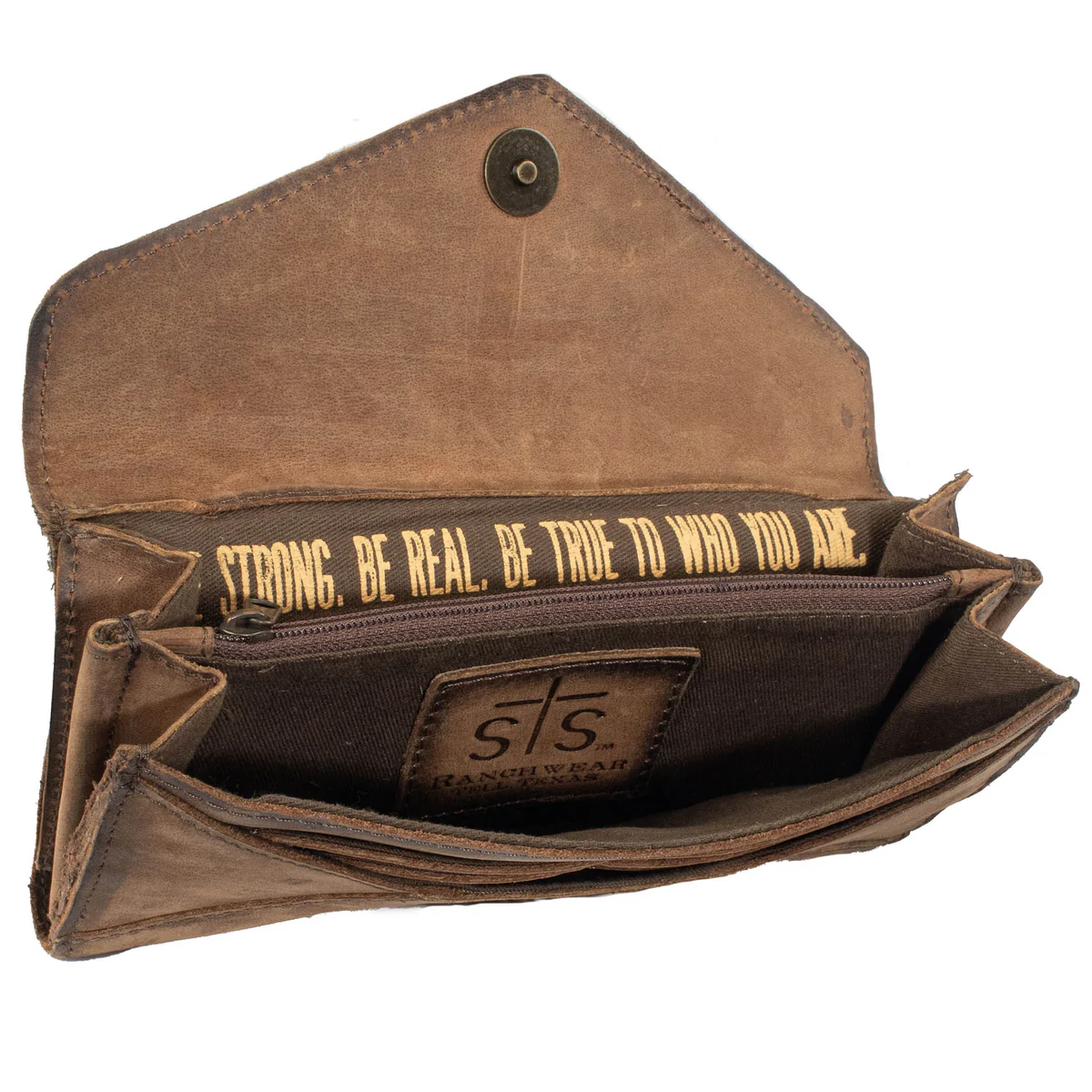 The Cowhide Style Wallet features genuine cowhide and full grain leather accents buffed for a natural feel.