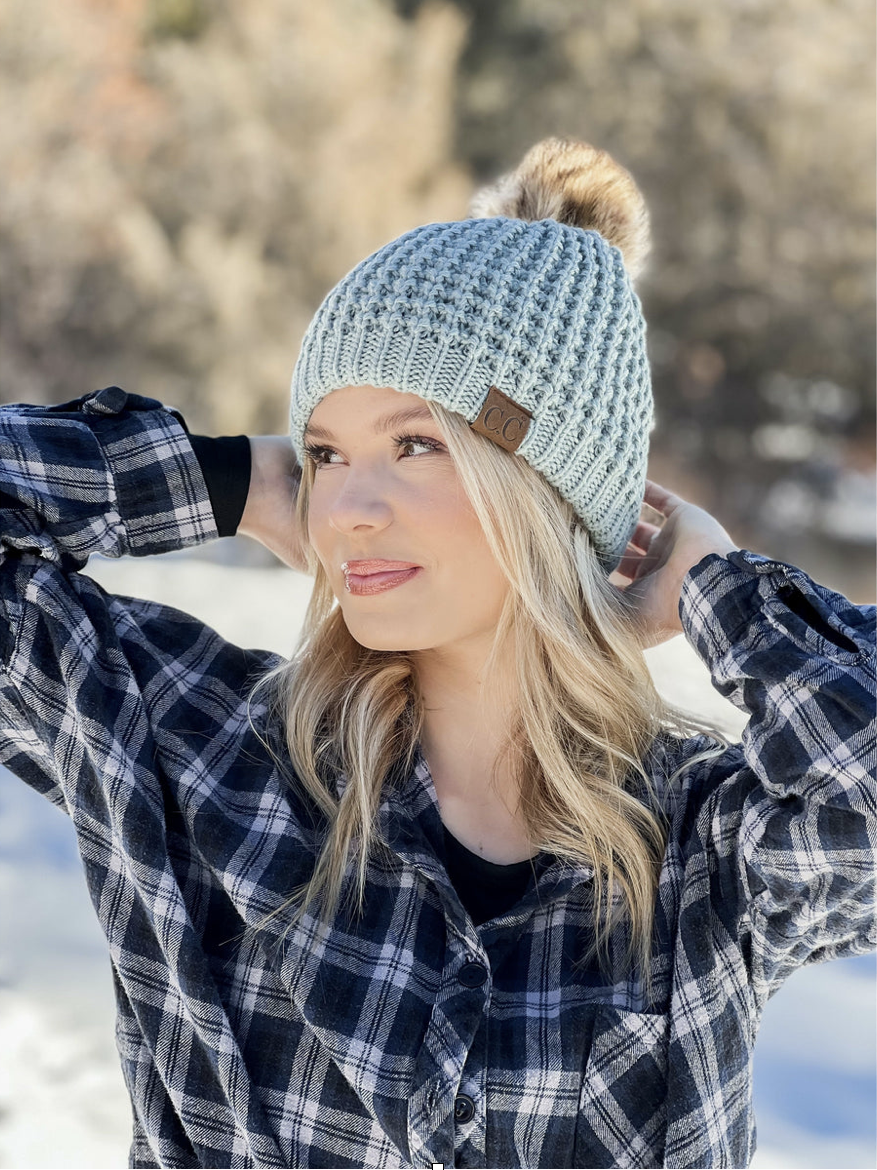 Everybody’s favorite print in a wool blend with a faux fur pom. Available in 4 popular colors!