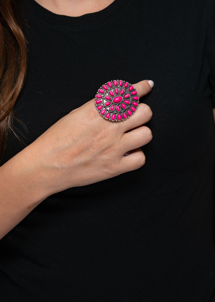 20″ W/ 8″ Tail Silver Chain Lariat Necklace with Aztec Concho Accents in Turquoise or Pink
