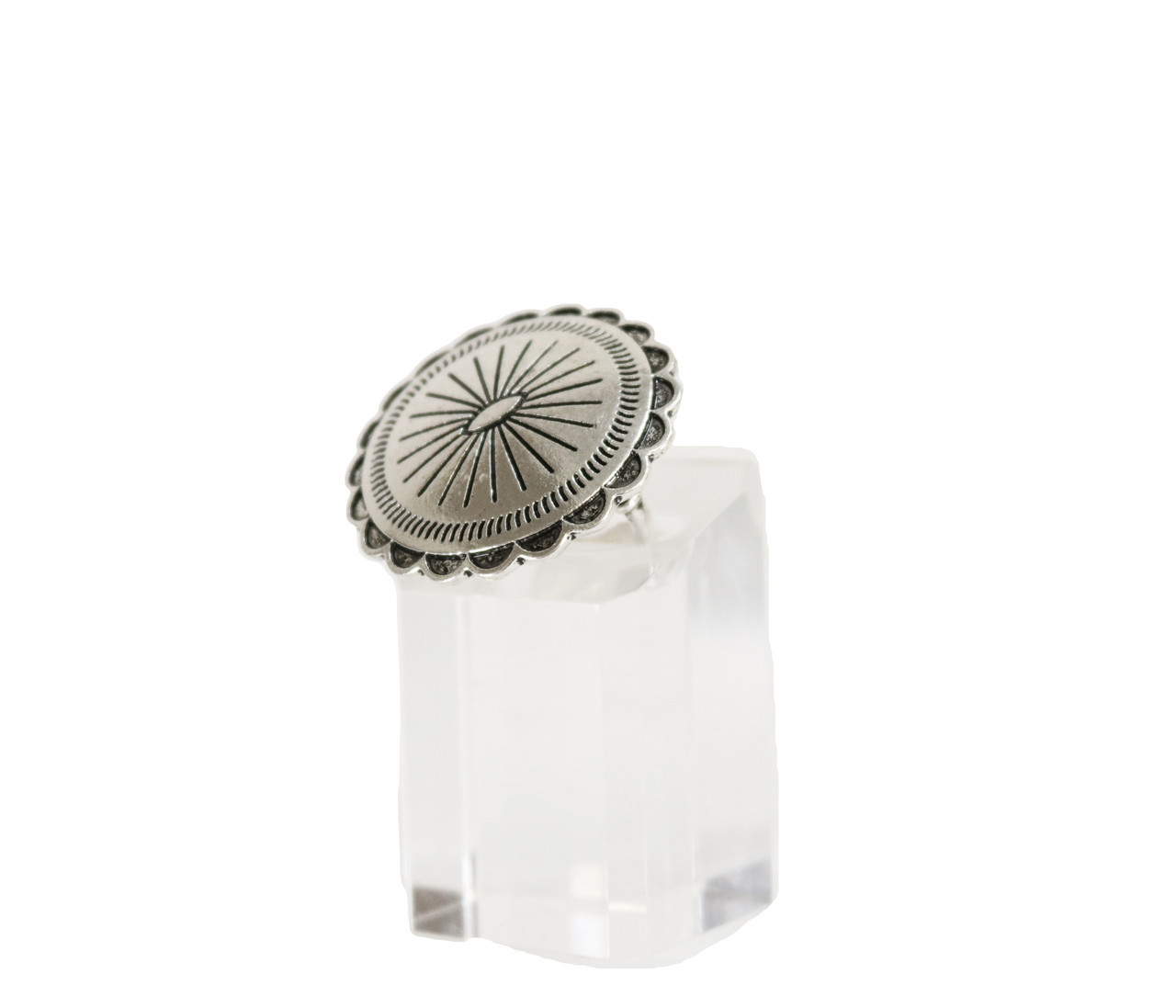 Adjustable Round Burnished Silver Concho Ring